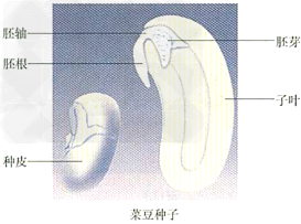 | 菜豆种子 | 有种皮和(胚) | 子叶(两)片,没有(胚乳) |