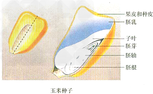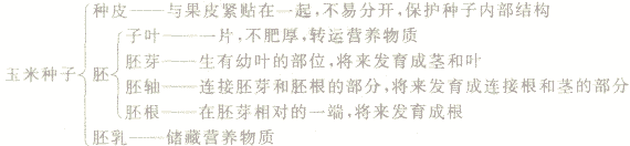 | 玉米种子 | 有种皮和(胚) | 子叶(一)片,有(胚乳) |