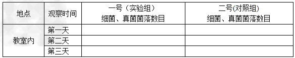 2、假设:不同的环境中都有细菌和真菌。细菌菌落的特点:菌落较小,不与培养基结合,表面光滑粘稠。真菌菌落的特点:菌落较大,是细菌菌落的几倍至几十倍,与培养基结合,表面常呈绒毛状、絮状、蜘蛛网状,孢子呈红褐绿黑黄等多种颜色。调查地点:教室内