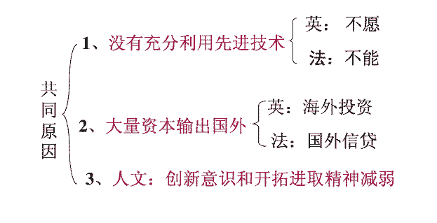 2.法国:法国的第一次工业革命受到比较牢固的封建土地制度影响,形成了以信贷业为主的金融市场,然而在重工业领域,由于投资规模难以形成,在资本主义世界逐渐被拉开差距,法国19世纪后期政局动荡,也给经济发展带来了不稳定的因素;