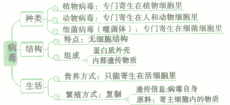 植物病毒:专门寄生在植物细胞里,如烟草花叶病毒;