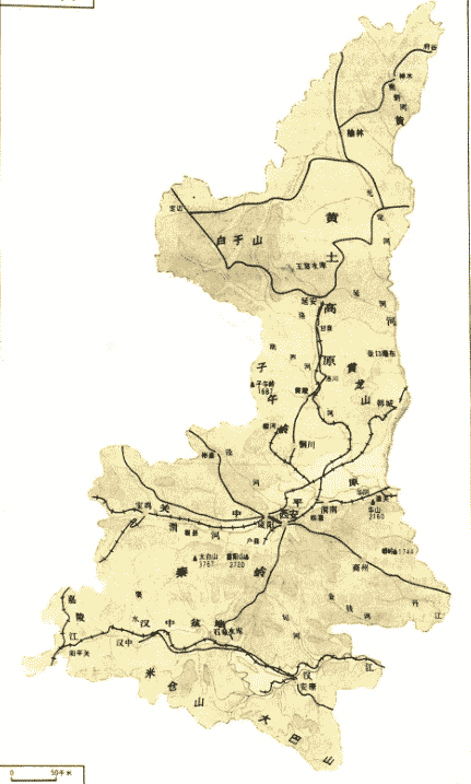 陕西省地形图: