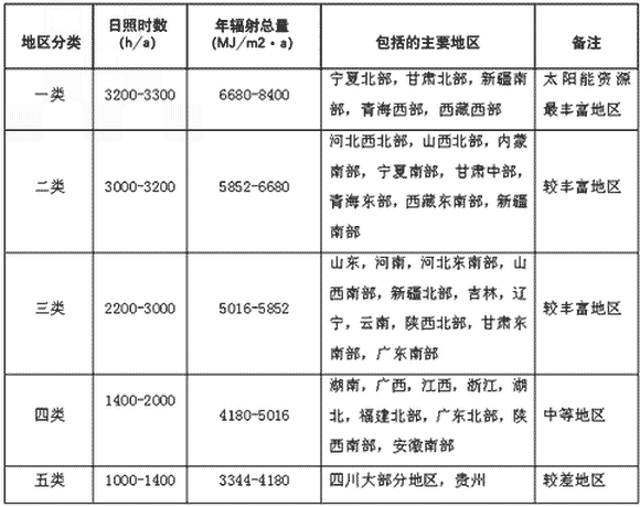 我国太阳能资源情况对比: