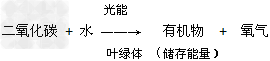 绿色植物利用光提供的能量,存叶绿体中把二氧化碳和水合成了淀粉等有机物,并且把光能转化成化学能,储存在有机物中,这个过程就叫光合作用。