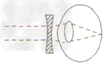 矫正:近视眼可以配戴凹透镜加以矫正,如图