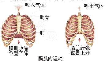 归纳总结:膈肌收缩,膈顶部下降,使胸廓的上下径增大;膈肌舒张,膈顶部回升,使胸廓的上下径缩小。