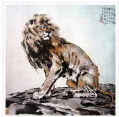 这幅图创作于1938年,当时日寇侵占了大半个中国,国土沦丧,生灵涂炭,徐悲鸿怨愤难忍。他画的负伤雄狮,回首跷望,含着无限的深意。他在画上题写:“国难孔亟时与麟若先生同客重庆相顾不怿写此以聊抒怀。”表现了作者爱国忧时的思想。这是一幅现实主义和浪漫主义结合的杰作。中国被称作东方的“睡狮”,现在被日本帝国主义侵占了中国东北大部分国土,“睡狮”已成了负伤雄狮。这头双目怒视的负伤雄狮在不堪回首的神情中,准备战斗、拼搏,蕴藏着坚强与力量。