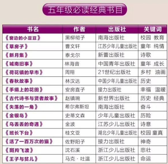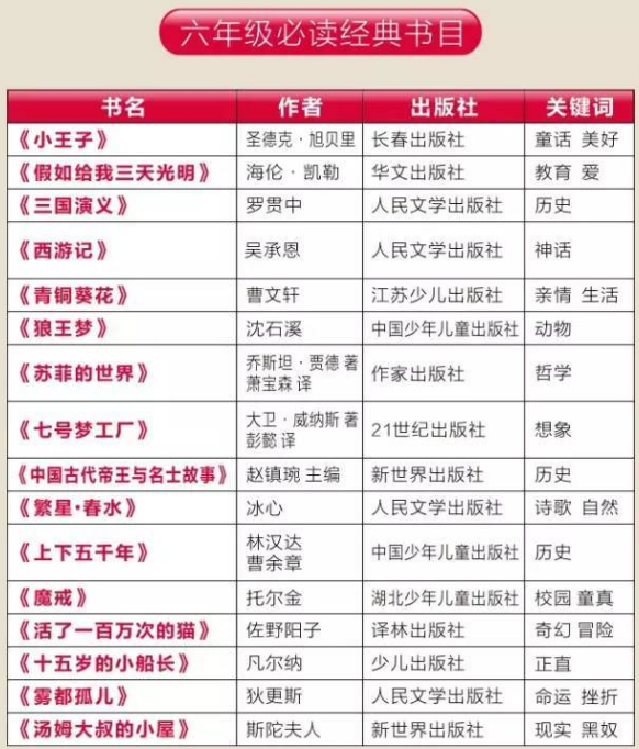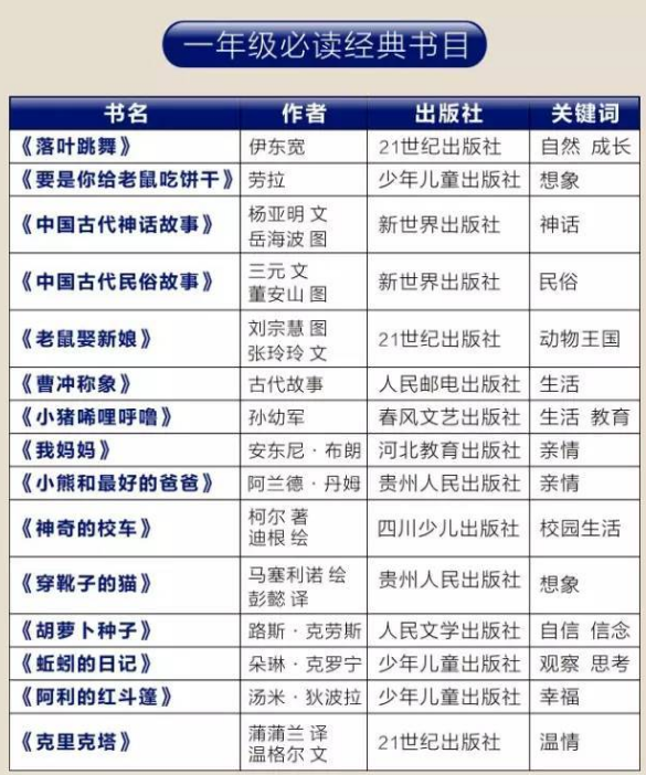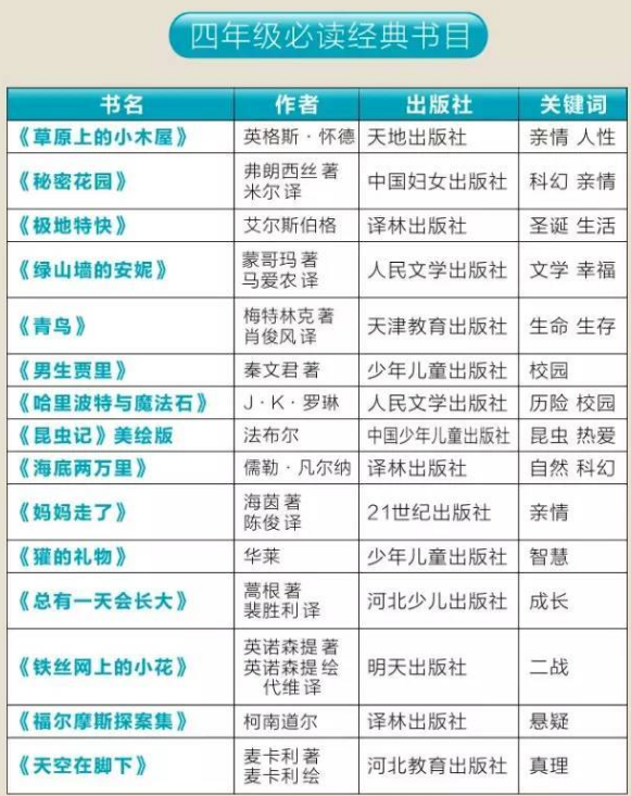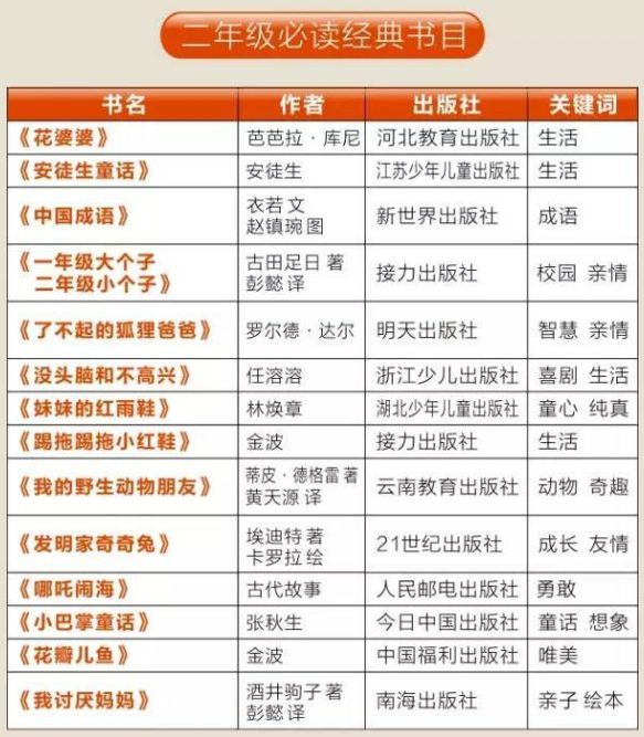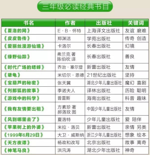 1到2019年级课外必读书单