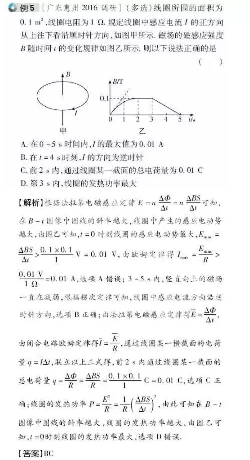 【点拨】磁感应强度B随时间均匀增大,则ΔBΔt是恒量,所以感应电动势与圆环的面积成正比,即与圆环半径的平方成正比.
