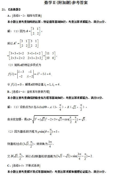 2019年普通高等学校招生全国统一考试(江苏卷)