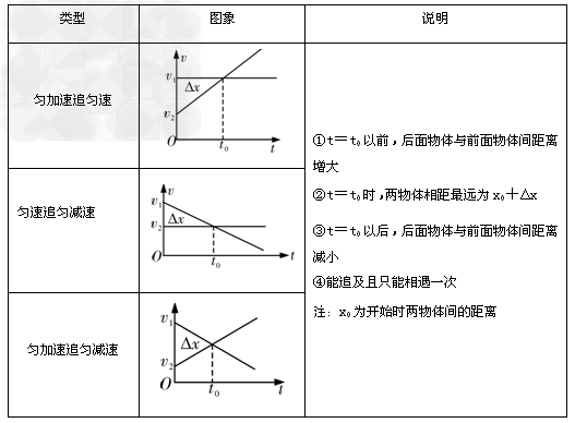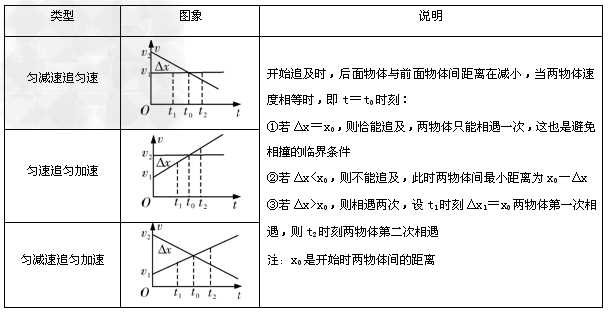 ①当两个物体在同一直线上运动时,由于两物体的运动情况不同,所以两物体之间的距离会不断发生变化,两物体间距会越来越大或越来越小,这时就会涉及追及、相遇或避免碰撞等问题。