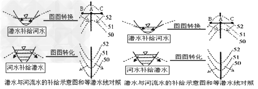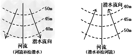 (6)判断潜水与河水的补给关系