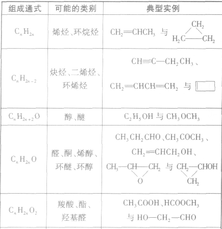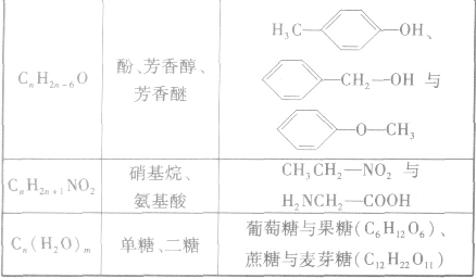 (3)官能团异构:指的是有机物分子式相同,但具有不同官能团的同分异构体的现象。常见的官能团异构关系如下表所示: