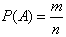 ;如果某个事件A包含了其中m个等可能基本事件,那么事件A发生的概率为