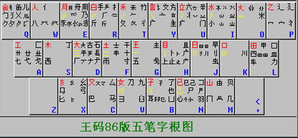 记忆说明:1、通过字母与对应字根挂钩联想,2、将字根跟字根联想
