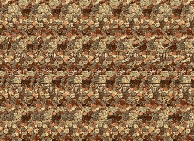首先,看出都再熟悉不过的第一层之后,也就是看出背景前面出现一个立体的$之后,好,放松,稳定,最关键的就是--在这种状态下,留意背景,不要管前面那一个$,确定你把目光都放在背景上的时候,好,这时就好象把背景当做你要看的另一张三维图!!采用同样的平行法,用目光再次“穿过”它!!!那么,在一瞬间,背景向前变远了!!!在原来那一个$的后面出现两个更大的$,只是稍有变形而已,这种状态,就可被称为第二层!!!!!同理,在保持看到第二层的状态下,以第二层那个变远的背景为依托,放松,调整眼肌,再次将目光平行穿越!!!好像又那么biu的一下,背景向前变得更远,在第二层视觉状态的基础上,那两个$下面出现更大些的三个并排的$!!!!~~~~无限欣喜中~~